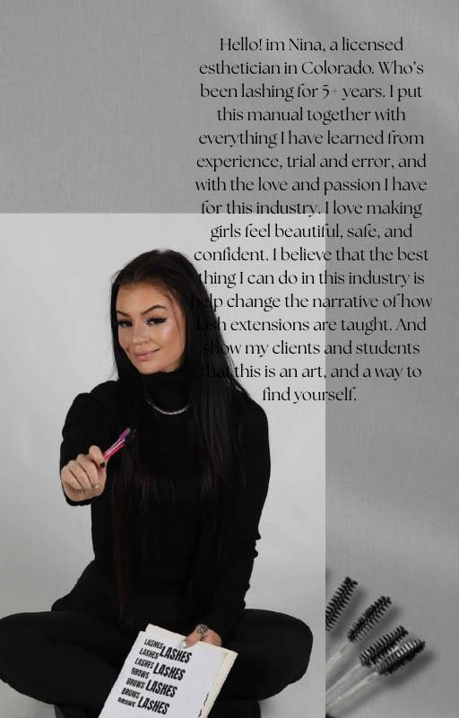 Hello, my name is Nina. I’m a licensed esthetician based in Colorado with over five years of experience specializing in eyelash extensions. I created this manual to share the knowledge I've gained through hands-on experience, continuous learning, and a deep passion for the lash industry.